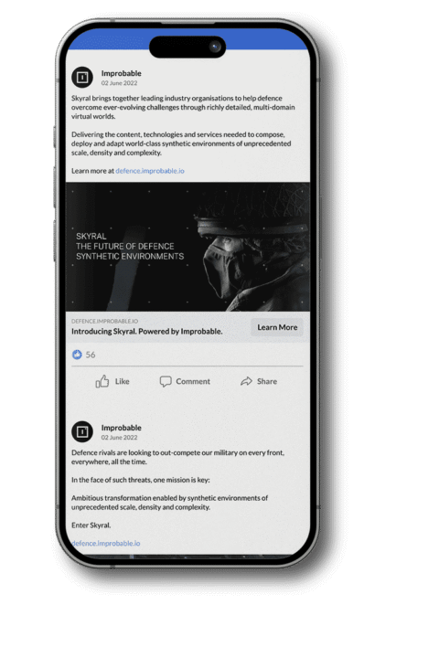 Through our comprehensive support and creative expertise, we helped position Improbable Defence as a leader in the synthetic environment space, setting a strong foundation for their continued growth and success.